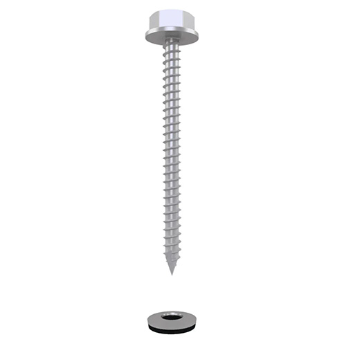 SnapNrack’s Sealing Wood Screw is the new standard fastener for solar roof attachments. At 3 inches in length, this stainless steel screw provides reliable pull-out strength and secure anchoring into both roof decking and rafters. The custom ½” hex head makes the complete UltraRail and TopSpeed systems truly single tool so that installers never have to change out tool bits on their drills. The integrated sealing washer ensures a watertight connection without extra steps, helping installers save time on the roof while maintaining long-lasting system integrity.