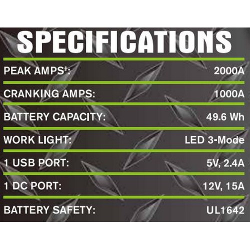- up to 40 Jump Starts from a single charge (4 Cyl)