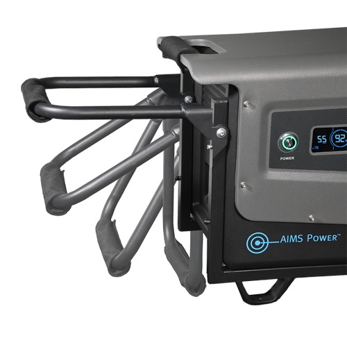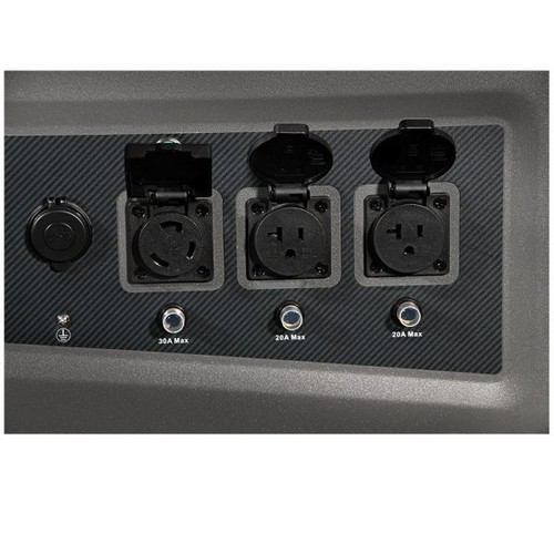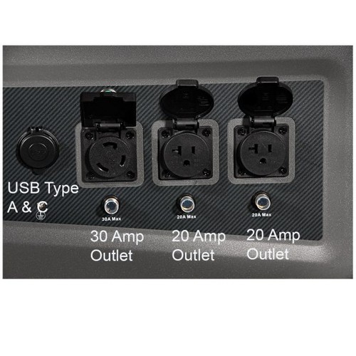 Built for mobility with a rugged handle and 9-inch wheels. The handle folds away when not in use, making storage a breeze. Outputs include USB type A and C, a 30 amp port and 2- 20 amp ports—ready for whatever you plug into it.